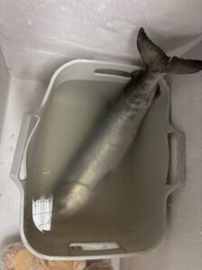 今回の誕生日イベントでは、いただいたサケを氷づけにしてホウちゃんにプレゼントしました。