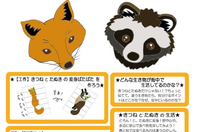 イベント情報環境共育プログラム「きつね と たぬき」を開催します! 2025.11.12イベント情報ホンドギツネホンドタヌキワークショップ 11月30日(日)のイベントのお知らせです。 環境共育プログラム「きつね と たぬき」 3歳から小学6年生までのお子様および保護者の方を対象に、身近な野生動物であるキツネとタヌキの生態や、私たち人間との関わりについて、体を動かす...