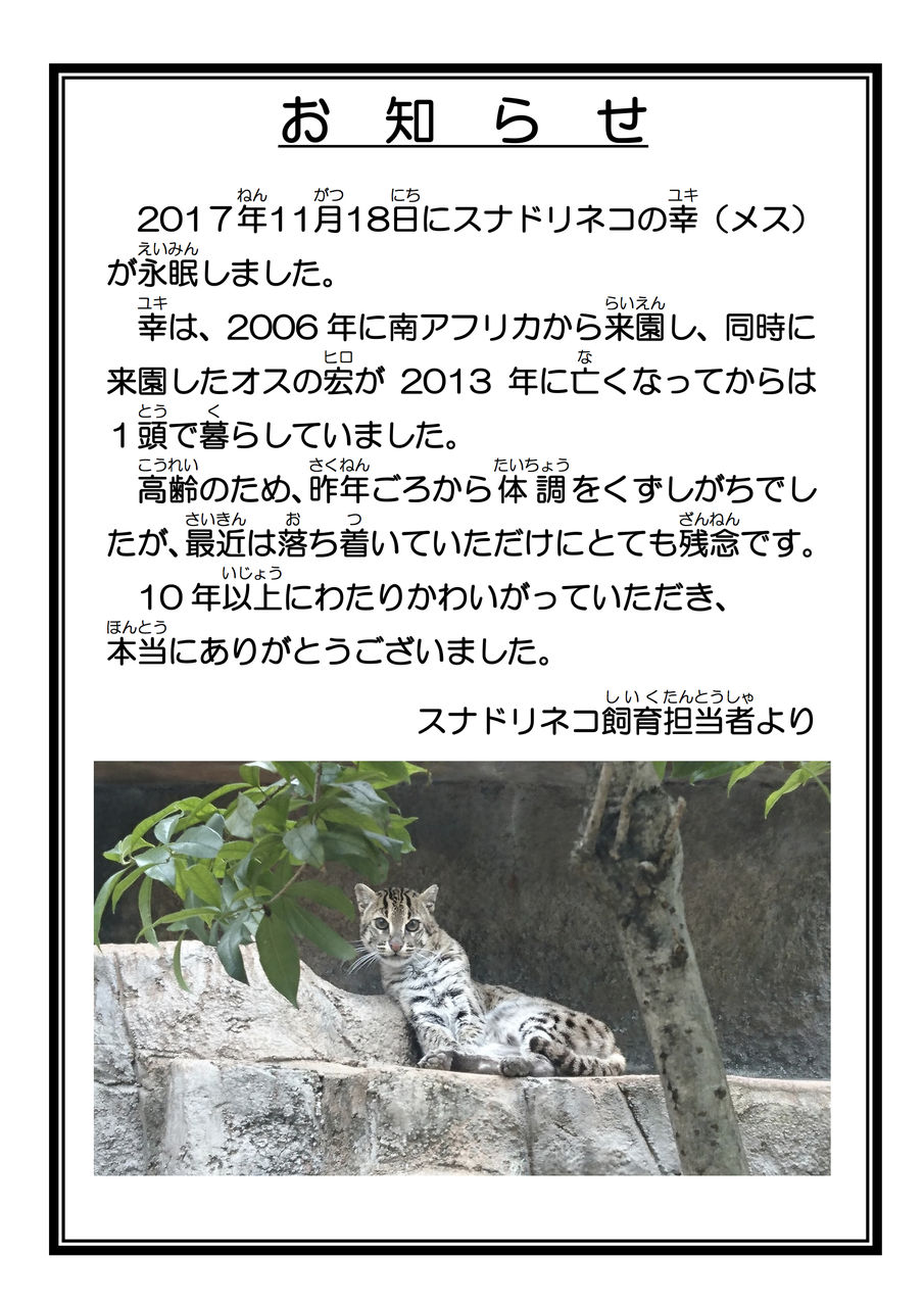 昨日11月18日にスナドリネコの幸が亡くなりました。