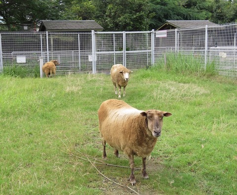 ヒツジたちは新鮮な青草を食べられて、飼育スタッフは草刈りをせずに済み、一石二鳥です![]()