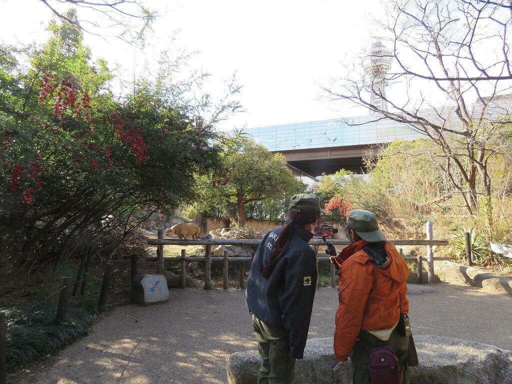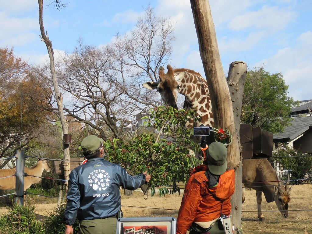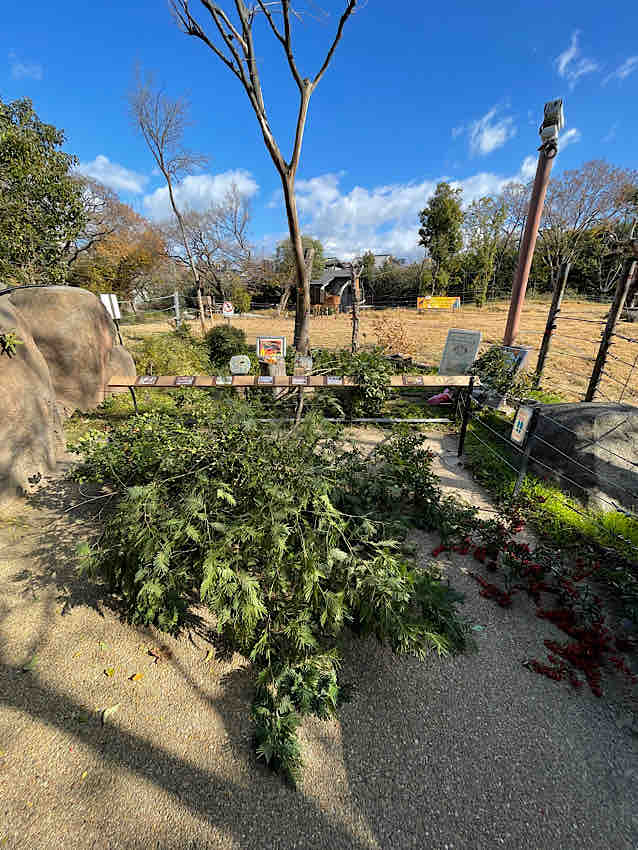 昨年中、人に馴れてもらえるように園内で木を切ってはハルカスのところに運んでおりました。