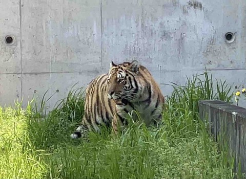 3/16に秋田市大森山動物園からやってきたアムールトラの風くんは、検疫が終わり、4/19から外に出る練習を始めました。