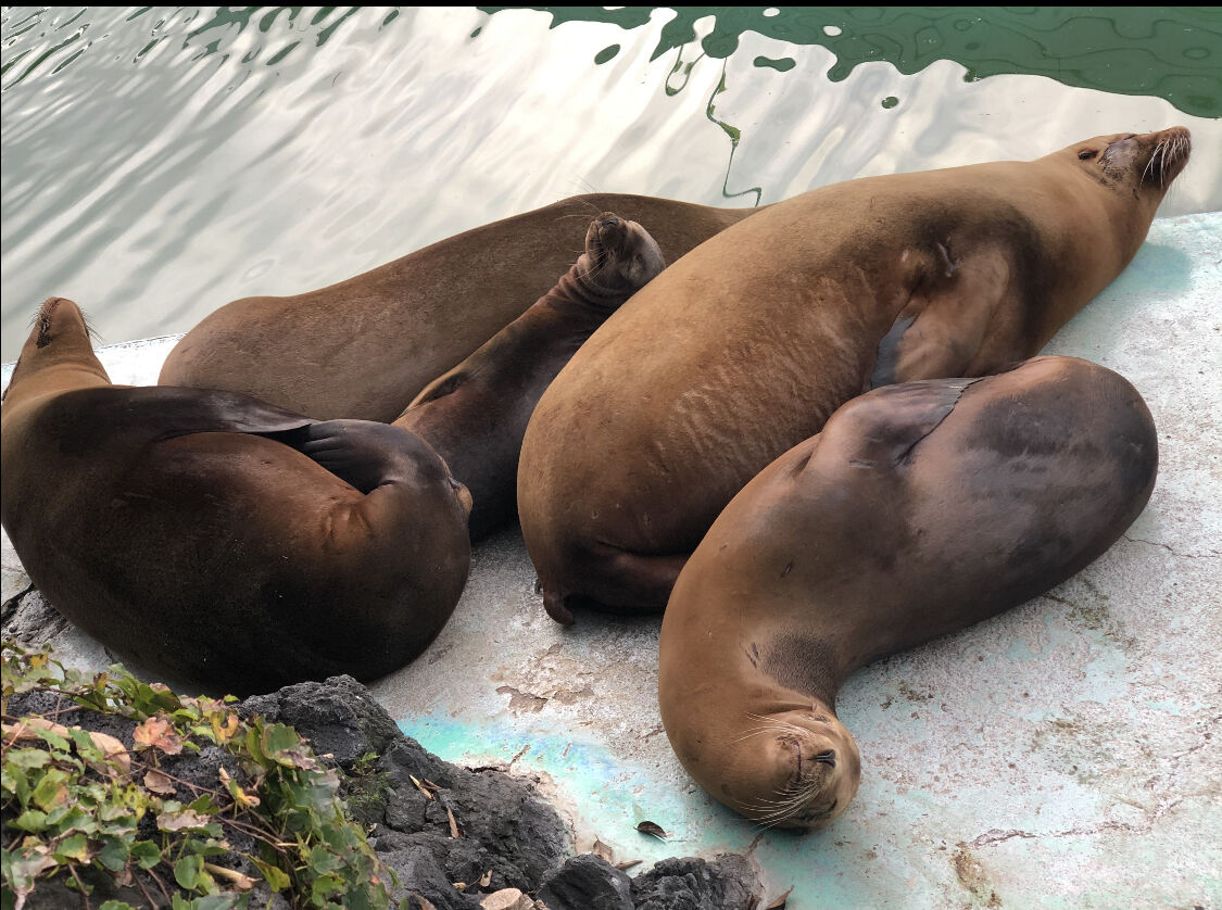 子供アシカのキュッキュ(メス)やガルーガ(オス)が高瀬にちょっかいを出して遊んでいたり、また別の日にはアシカたちが高瀬を囲み互いにもたれ合って暖め合いながら寝ている光景を思い出します。