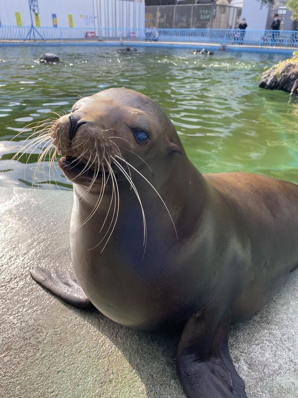 いつも自由奔放で、若いアシカたちに負けず我先に!とエサを食べにくるとてもたくましく優しいアシカでした。