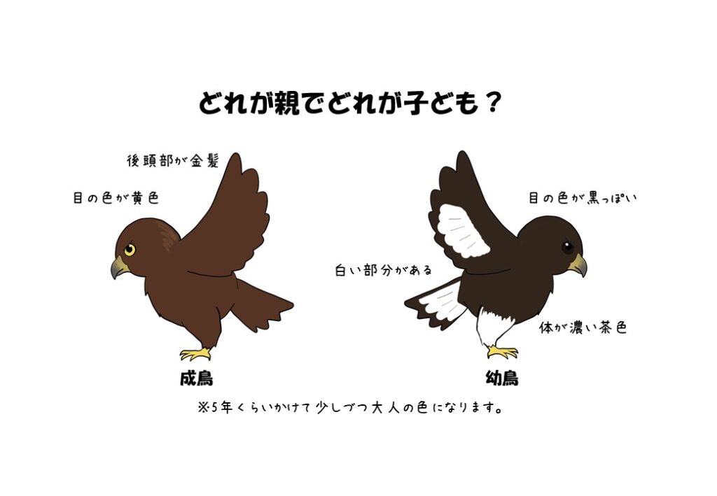 イヌワシはオスもメスもほとんど同じような見た目ですが、オスの方が少し体が小さい傾向にあります。
