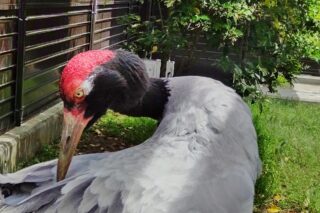 9月に多摩動物公園から来園したソデグロヅル(メス)1羽です!