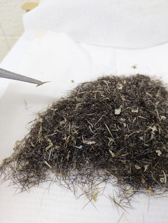 飼育担当者が集めてくれたツガルの毛。ゴミがたくさん混じっています・・・