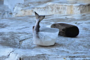今回の誕生日イベントでは、いただいたサケを氷づけにしてホウちゃんにプレゼントしました。
