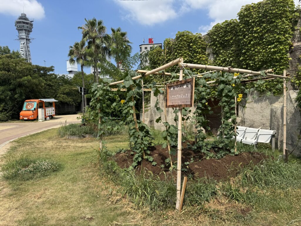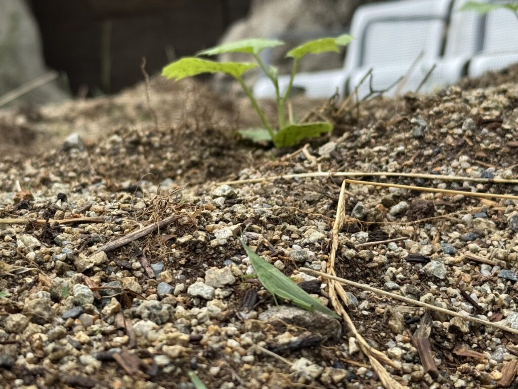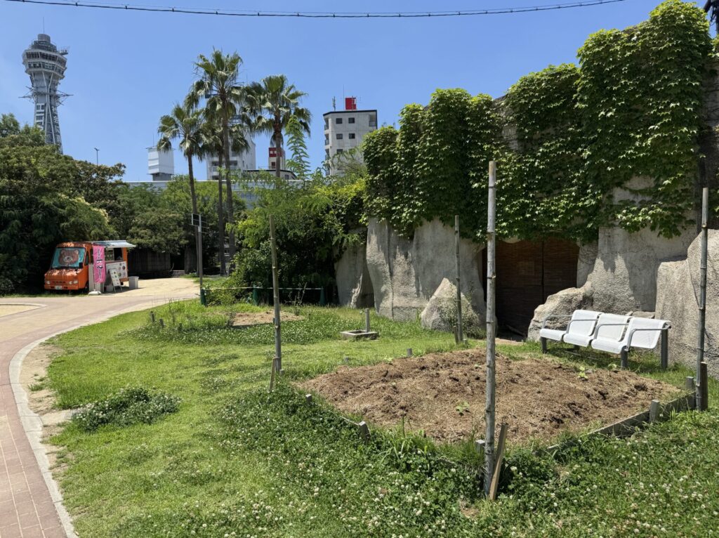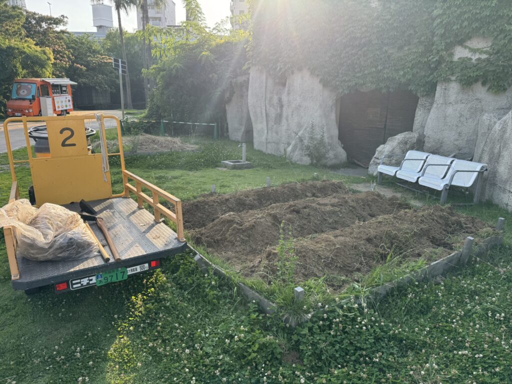 トラ舎の前の休憩エリアで動物園の堆肥を入れた畑を作り、園児たちのヘチマを植えました🌱