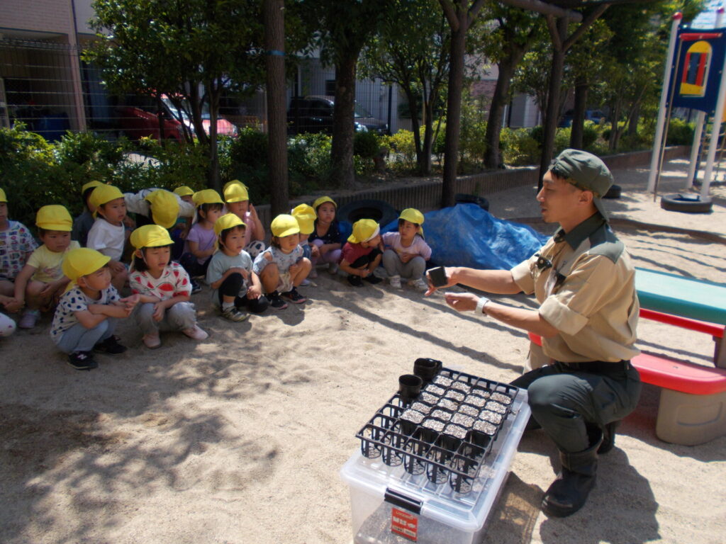 ともしび保育園で動物のうんちや生き物のつながり、ヘチマたわしやマイクロプラスチックの話をさせてもらい、保育園でヘチマを育ててもらいました🌱