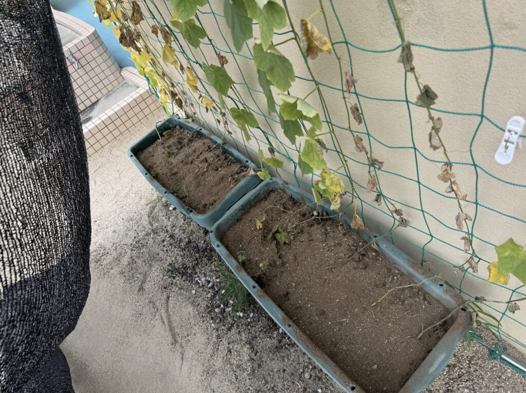 ヘチマはぐんぐん大きくなったのですが、残念ながらヘチマの実が実らずこの年は収穫できずでした![]()
