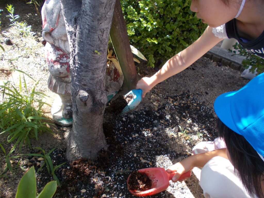 今回、協力いただいたともしび保育園では、園庭の植栽に動物園の堆肥を活用してくれています。