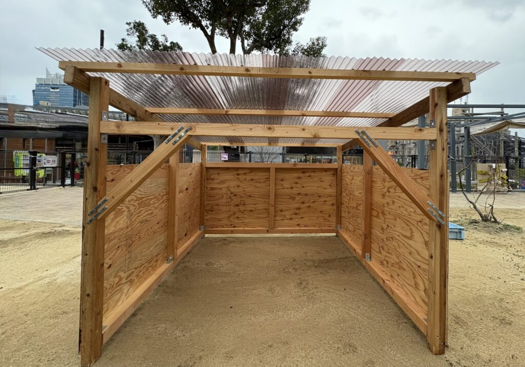 ただ、屋外展示場には雨風を凌げる場所が無かったため、小屋を製作することになりました!