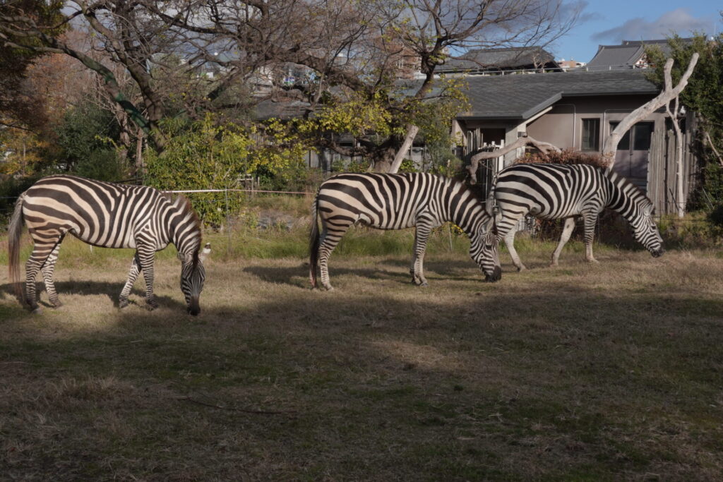 そんな午年の初開園日、1月1日から熊本市動植物園から来てくれたグラントシマウマのヒトミとカイセイ、そしてこれまで天王寺で暮らしてきたチサトの3頭での展示を開始しました。