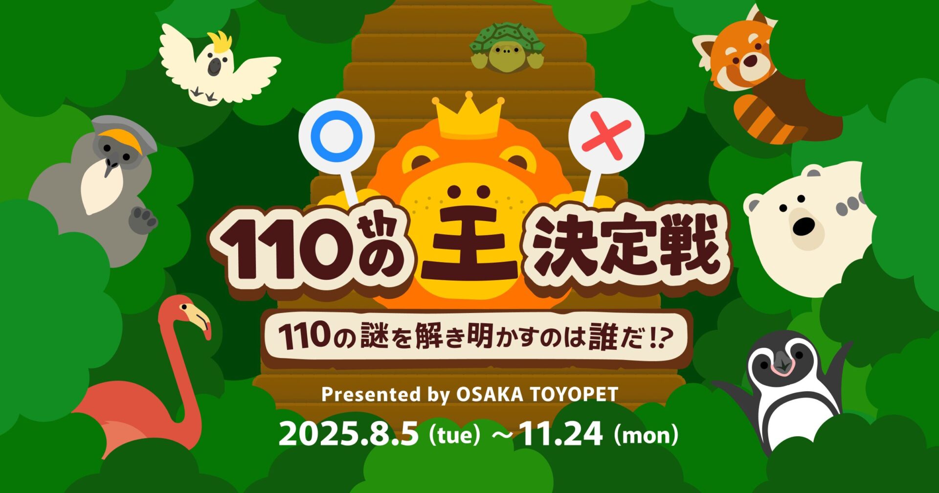 令和7年8月5日(火曜日)~11月24日(月曜祝日)の期間で、大阪トヨペット株式会社と連携し、動物と環境を楽しく学べる参加型キャンペーン「110の王決定戦」を開催しました!