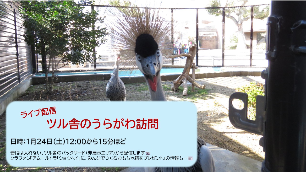 ということで、普段は入ることができないツル舎のバックヤード(非展示エリア)から配信します📹