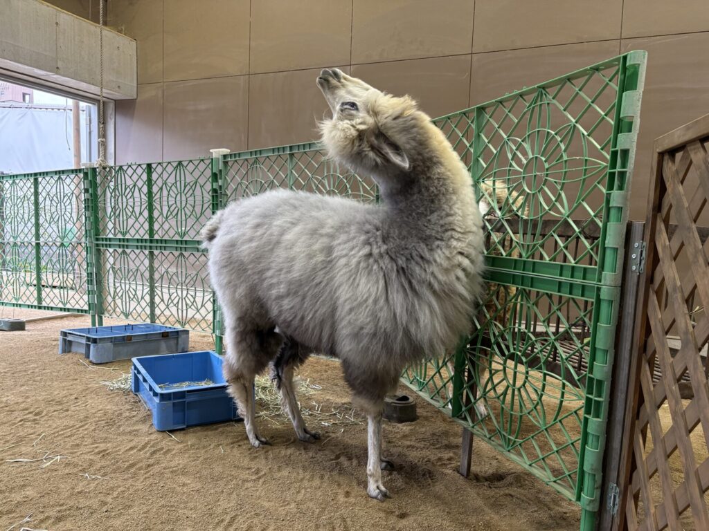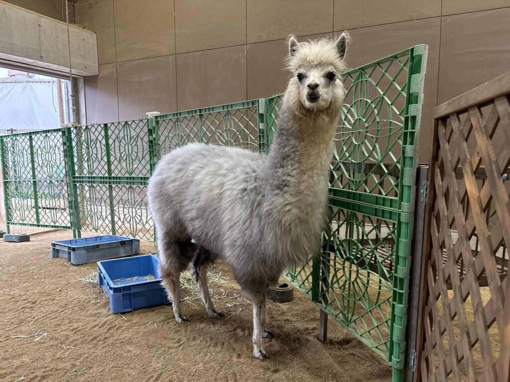 春頃には毛刈りをするのでモコモコのアルパカを見れるのは今だけ!