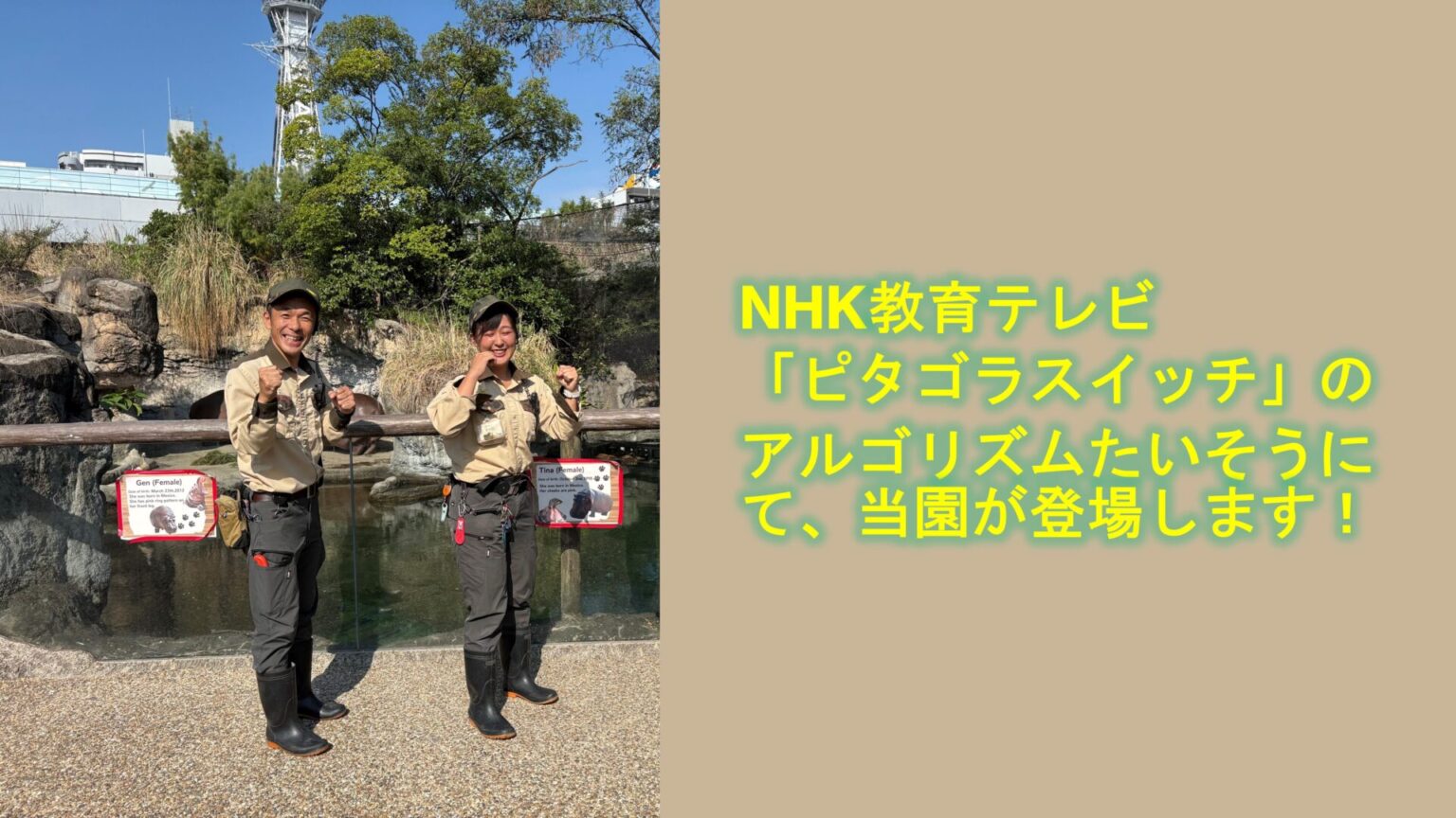 いつもスタッフブログをご覧くださりありがとうございます。先日、NHK「ピタゴラスイッチ」内の人気コーナー「アルゴリズムたいそう」に当園が登場しました!