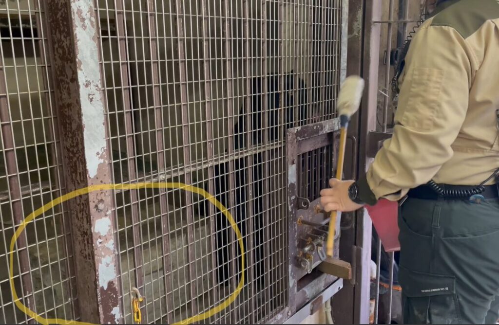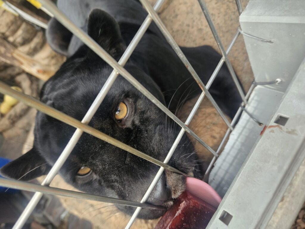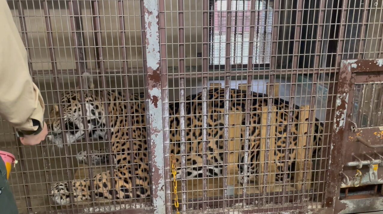 当園のブログでは、いろんな動物の『ハズバンダリートレーニング』というものが紹介されています。『ハズバンダリートレーニング』とは…「動物の自発的な協力のもとで体重測定や採血、検温、爪切りなどの健康管理やケア、治療を行うこと」を言います。では、ジャガー舎の2頭に対してどのようなこと行っているのか紹介したいと思います。