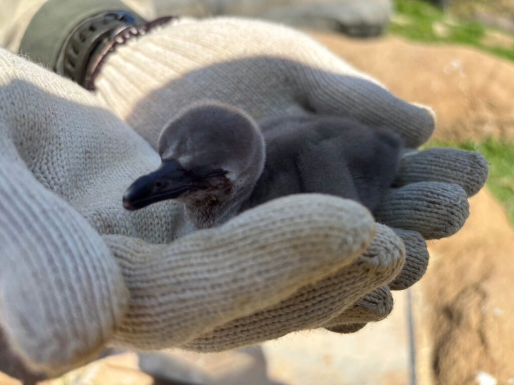 今月に入り、ペンギンパーク内で初めて雛が生まれました。
