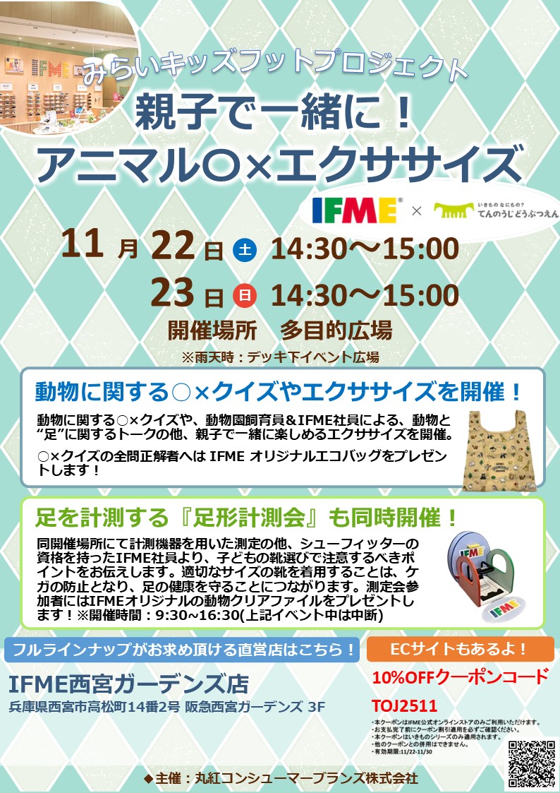 IFME公式ウェブサイト:IFME × 天王寺動物園 『みらいキッズフットプロジェクト』コラボイベント開催 – IFME公式オンラインストア