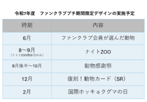 ※動物の状態等に合わせ、適宜限定デザインの追加、開催時期の変更等を行う場合があります。
