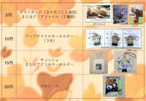例)10~12月(あきまつり開催中)、10月にご来園いただいた場合は、10~12月分3個の引換が可能です。