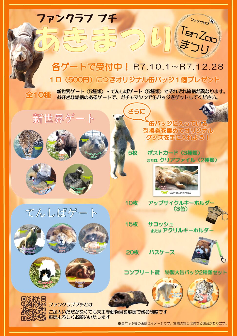 10月1日(水曜日)~12月28日(日曜日)までファンクラブプチ 秋の「TenZooまつり」として、オリジナル缶バッジが登場!!