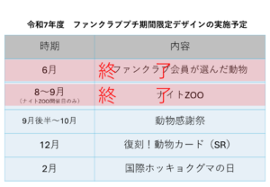 令和7年度 ファンクラブプチ期間限定デザインの実施予定