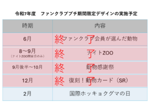 令和7年度 ファンクラブプチ期間限定デザインの実施予定