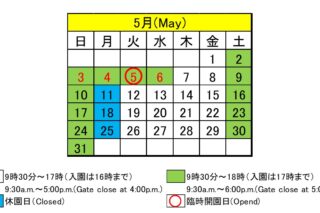 当園では、ゴールデンウィークの以下の対象期間は