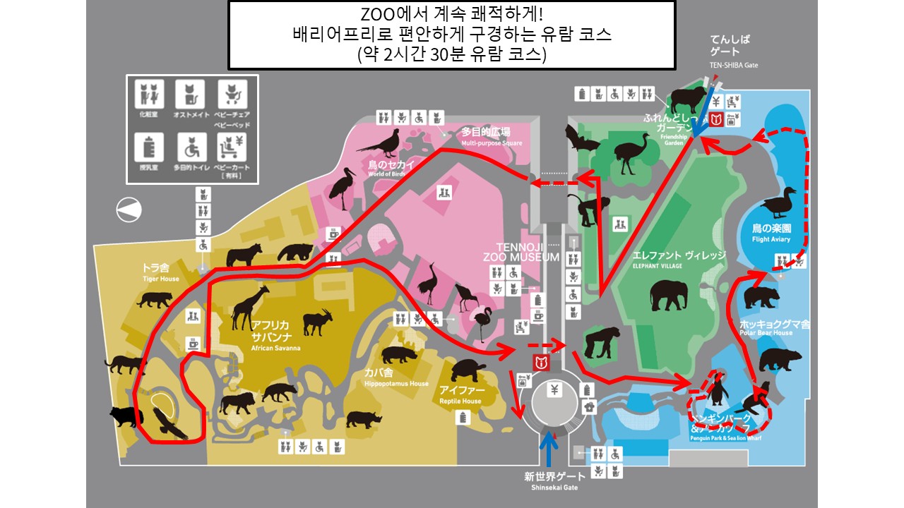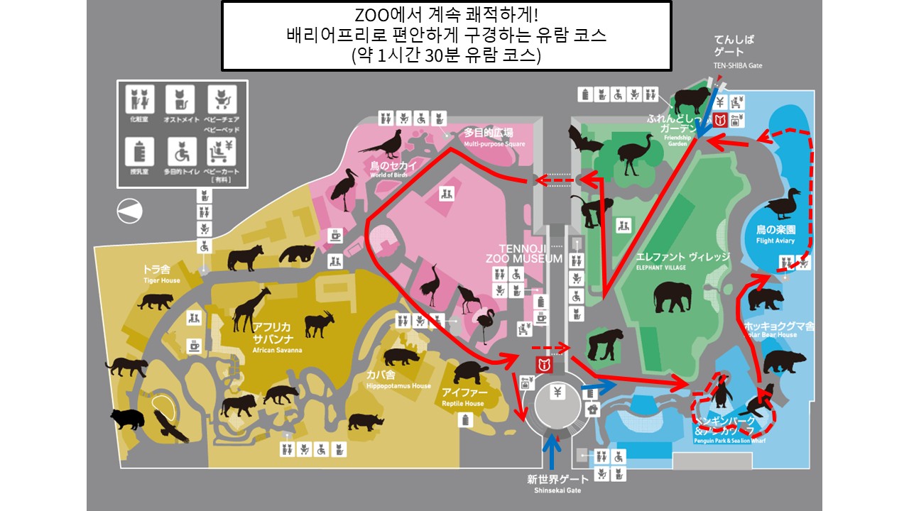 아기를 동반한 가족이나 휠체어 이용자도 원활하게 돌아다닐 수 있는 코스를 소개합니다. 어린 자녀를 동반하는 경우 유모차 대여, 수유실, 기저귀 교환대 등의 시설을 이용하실 수 있습니다.