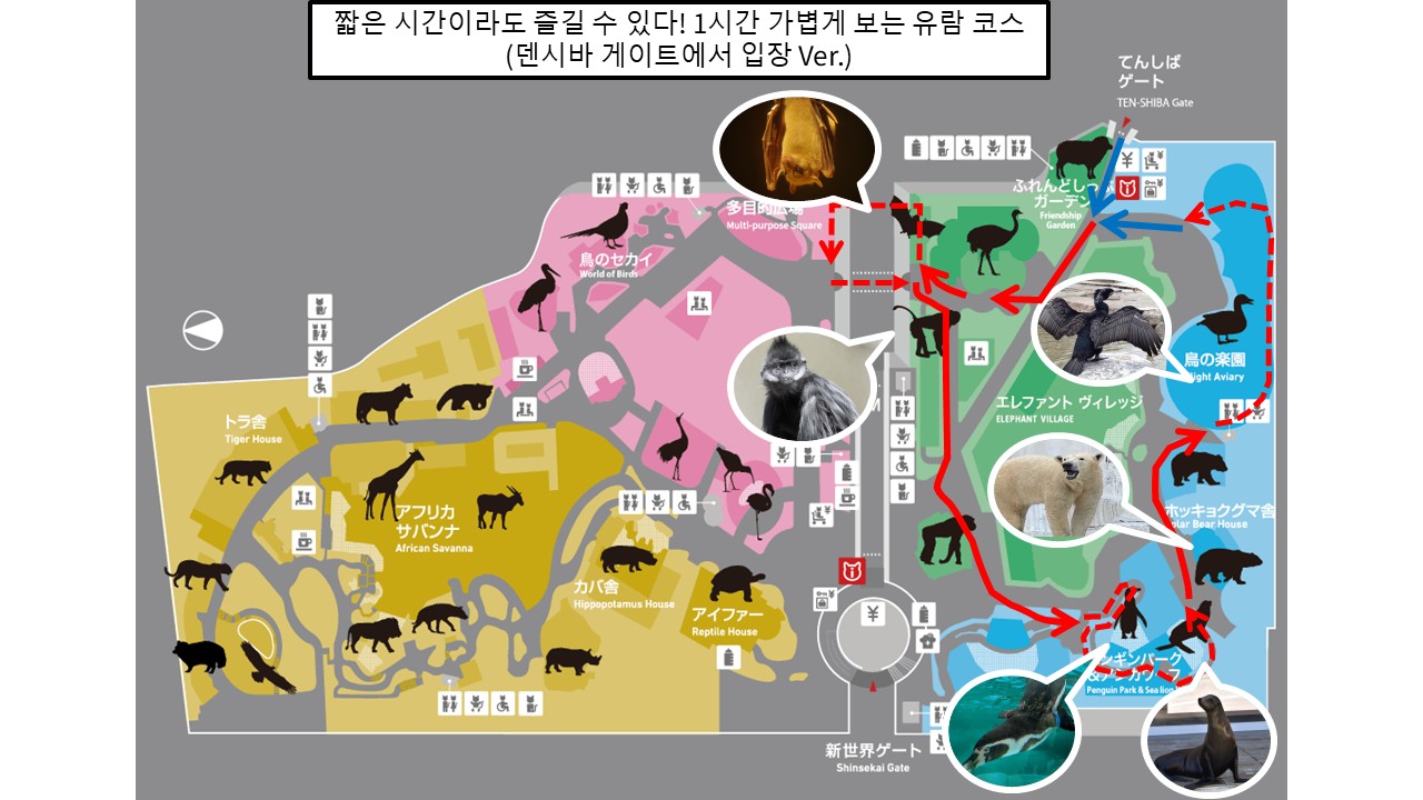 덴시바 게이트 출발 코스에서는 북극곰이나 펭귄 등
