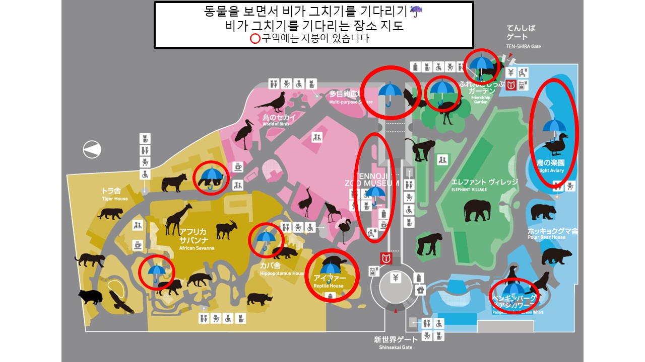 동물을 보면서 비가 그치기를 기다리실 수 있습니다. 비 오는 날에만 나타나는 동물의 모습을 보실 수 있을지도 모릅니다!