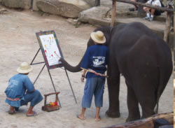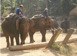 先に述べたようにアジアゾウは人間との関係で最も上手く行っている種の一つにあげられますが、最近ではその関係が危うくなり崩れかかっているためいろいろな努力がなされています。タイもインドに次いで使役ゾウが沢山いました。記録によると100年前には10万頭が飼育され、森林伐採等材木関係に従事していました。しかし主な天然資源であったチークが過度の伐採により仕事が年々減少し、ついに1989年に森林伐採が全面禁止になってしまいました。家族同然に生活していたゾウも年々その仕事量に合わせるように数が減り続けていました。