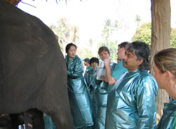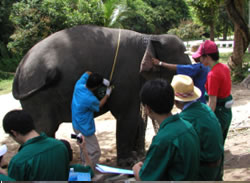 これほどの動物ですからこのゾウに関する研究並びに支援は国内だけでなく国際的にも多くの協力者や団体が名乗りを上げています。日本からも動物園の職員や動物に関する勉強をしている大学生などがチェンマイ大学との協力で平成15年から研修会を開催し、毎年多くの参加者が集まっています。また今年はマヒドン大学でゾウの繁殖生理に造詣が深いドイツの研究機関と協力して専門研修会を開き、日本を始め韓国、台湾、スリランカ、シンガポール、ドイツ、オーストリア、アメリカなど10カ国から参加者が集まりました。