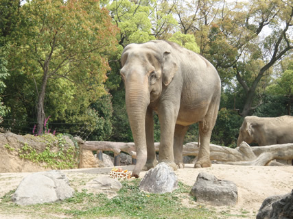 ●1950年にタイより来園したアジアゾウの春子の来園63周年を記念したイベントを行いました。飼育員が食パンで作った特製のケーキをプレゼントし、みなさんとお祝いしました。引き続いてレクチャールームで開催した“園長の動物園講座”は「天王寺動物園のゾウの歴史」と題して行いました。