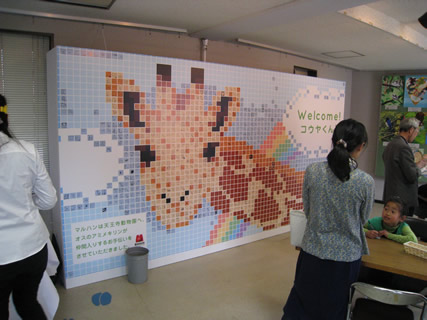●新世界ゲートの展示室で、キリンwelcomeメッセージの募集を開始しました。メッセージカードをパネルに貼り付けてモザイクアートを作成する予定です。 (4/24、4/27〜5/5) |