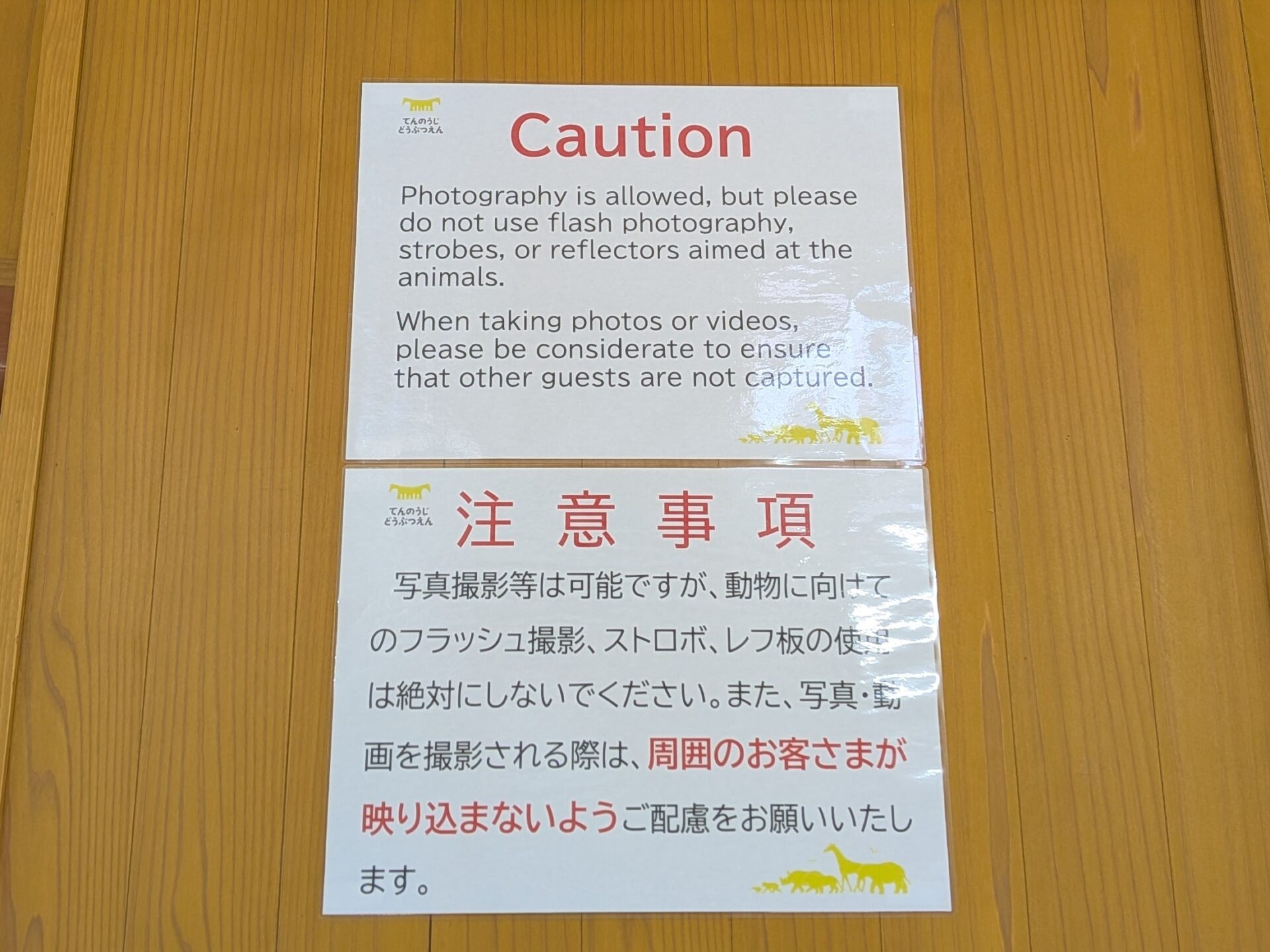 「てんのうじどうぶつえん」と掲示させていただきました(2023年10月)。